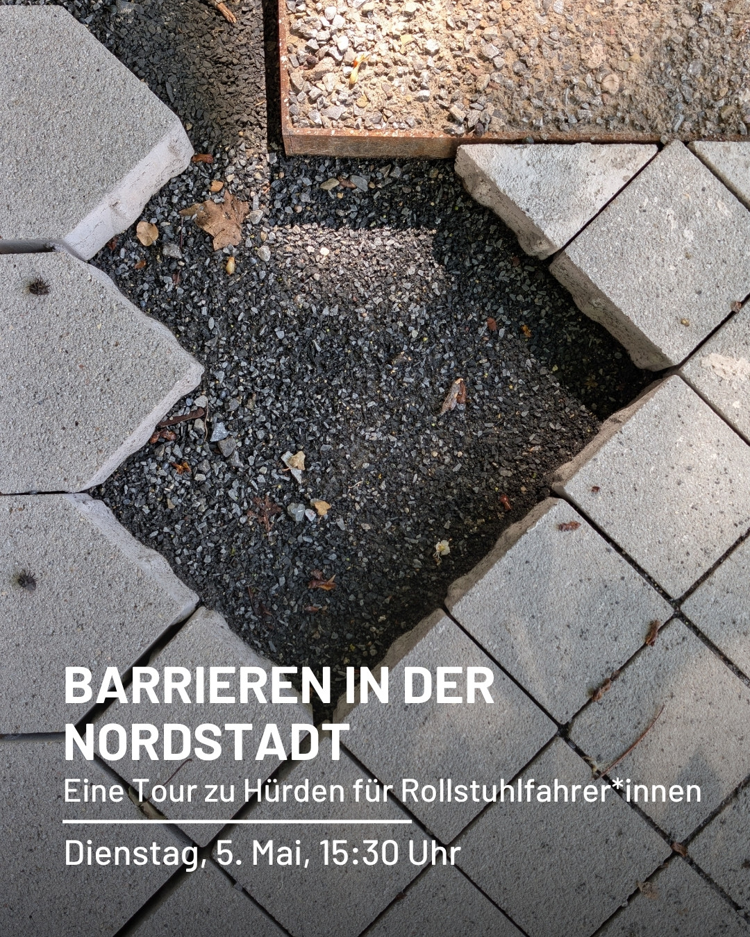 Zu hohe Bordsteine, Schlaglöcher, überraschende Baustellen und der Bahnfahrer, der einen an der Haltestelle stehen lässt: Mit dem Rollstuhl in der Stadt unterwegs zu sein ist oft nicht leicht. Zu diesem Thema kann Susanne Grimm leider viel berichten: Susanne ist auf den Rollstuhl als Fortbewegungsmittel angewiesen und stößt täglich auf Barrieren, die ihr das Leben und das Vorankommen schwer machen. Darüber will sie uns bei einem gemeinsamen Ausflug durch die Nordstadt mehr erzählen. Am 5. Mai von 15:30 dek 17 Uhr erkunden wir mit ihr die Kasseler Nordstadt und hinterlassen als Zeichen des Protests rote Ballons an den Barrieren, auf die wir stoßen. Wir treffen uns an der Hegelsbergstraße/Ecke Holländische Straße. Bitte meldet euch vorab bei Gerrit Retterath unter bir.