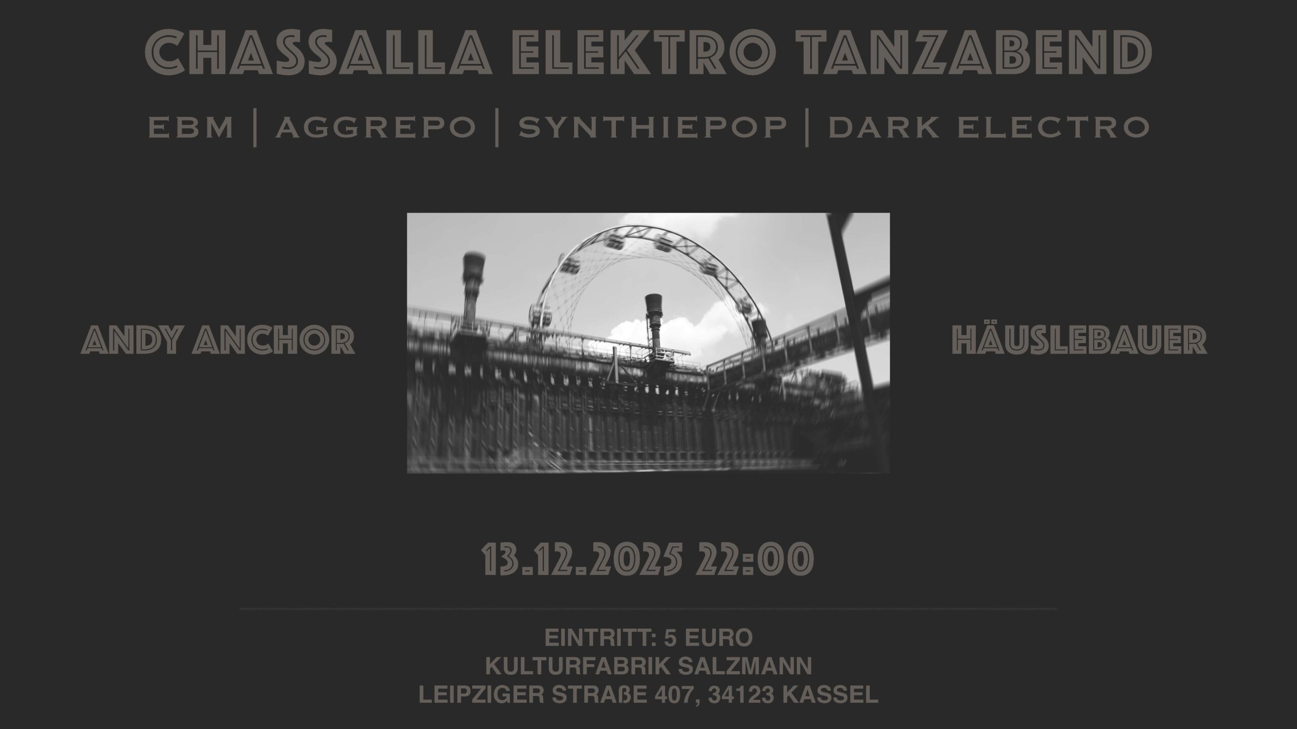 Zum dritten Mal lädt die Kulturfabrik Salzmann am 13.12.2025 من 22:00Uhr zu einem Abend für tanzbegeisterte Jünger der elektronischen Körper- وموسيقى الحركة.