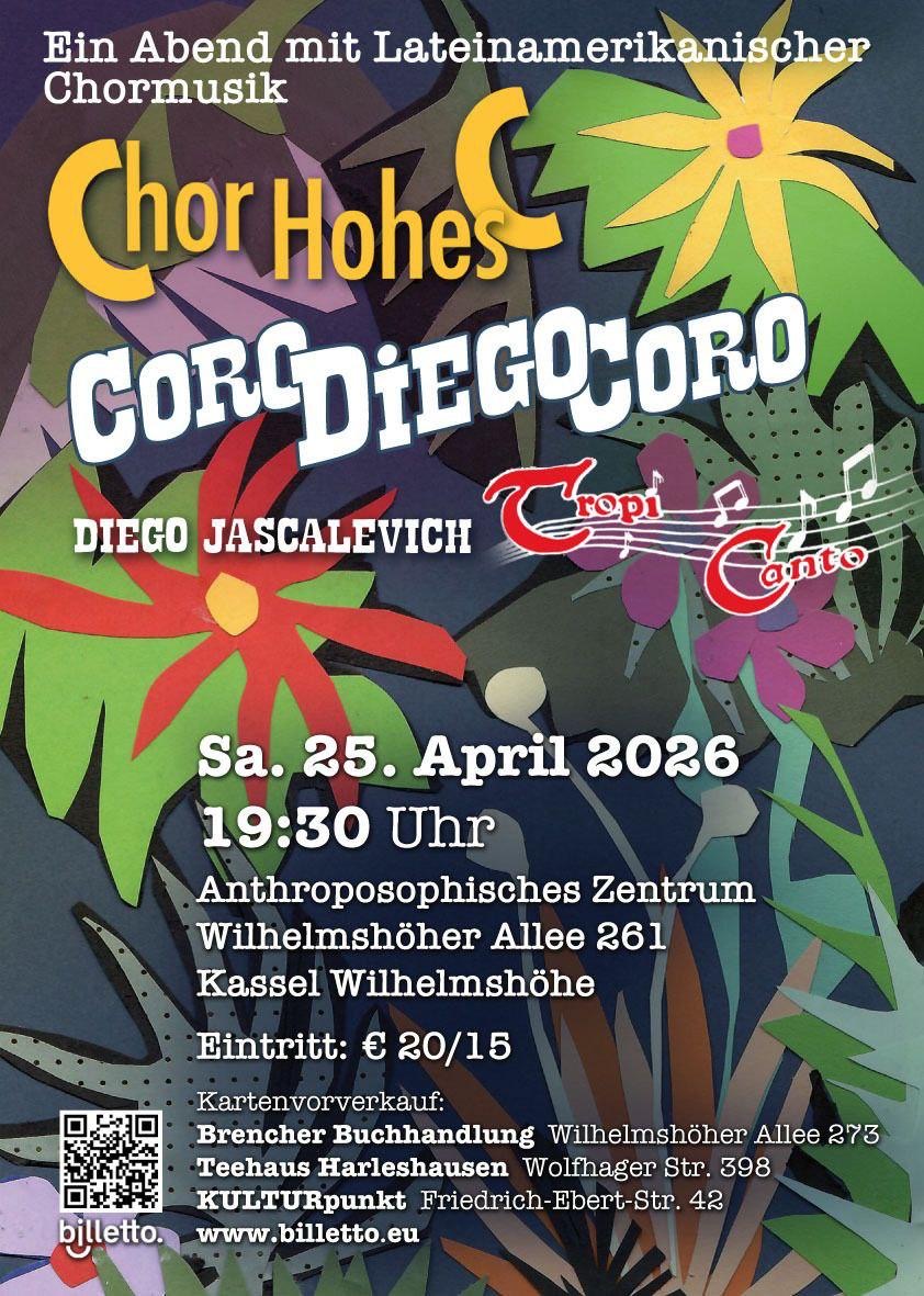 Der ChorHohesC präsentiert gemeinsam mit dem Chor TropiCanto und dem Charango-Virtuosen Diego Jascalevich ein Konzert mit einer breiten Palette lateinamerikanischer Musik. Jazzige Latin-Standards, chilenische Widerstandslieder, Musica Popular Brasileira und karibische Vokalmusik aus Kuba und Haiti.