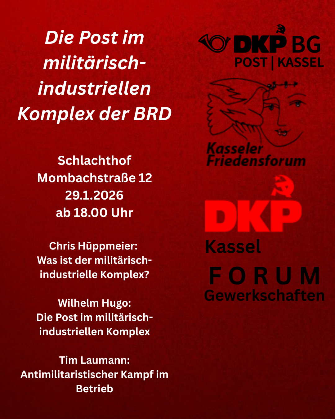 Die Veranstaltung ist auch für Leute außerhalb der Post interessant. Immerhin bekommt ihr alle unregelmäßiger in schlechterem Zustand Post und habt alle kein Interesse am nächsten Krieg des deutschen Imperialismus.