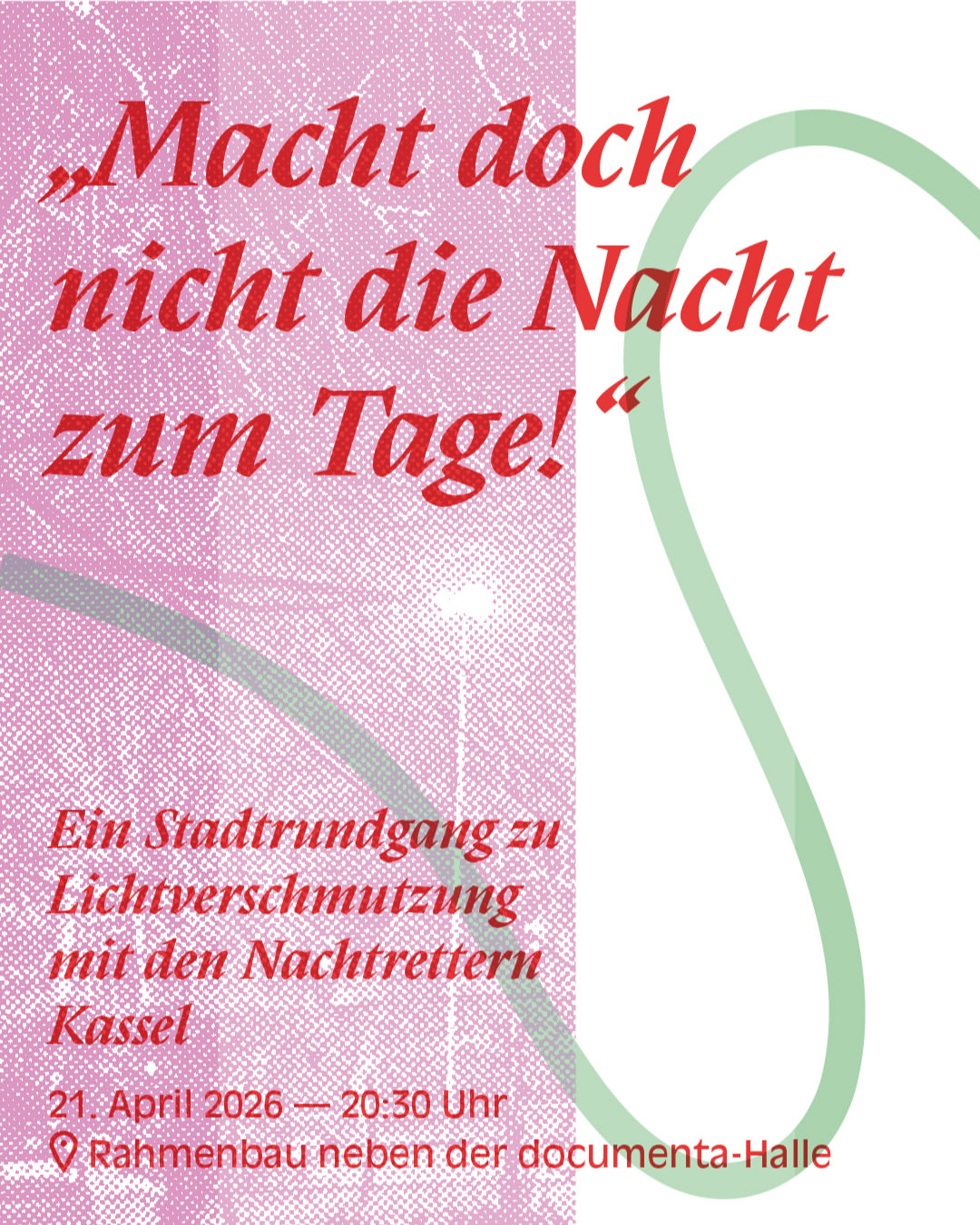 Der Rundgang startet am 21. أبريل 2026 ل 20:30 Uhr am Rahmenbau neben der Documentahalle am Friedrichsplatz in 34121 كاسل. Der Rundgang ist kostenlos. Es werden Spenden für die Nachtretter Kassel gesammelt. التسجيل ليس ضروريا.