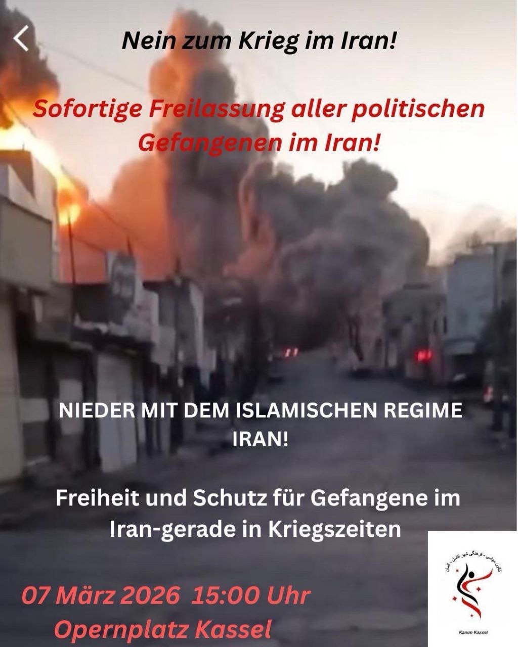 Kommt alle zur Kundgebung von Kanun, um gegen den doppelten Angriff auf die iranische Bevölkerung durch den Westen und das Mullah-Regime zu protestieren!