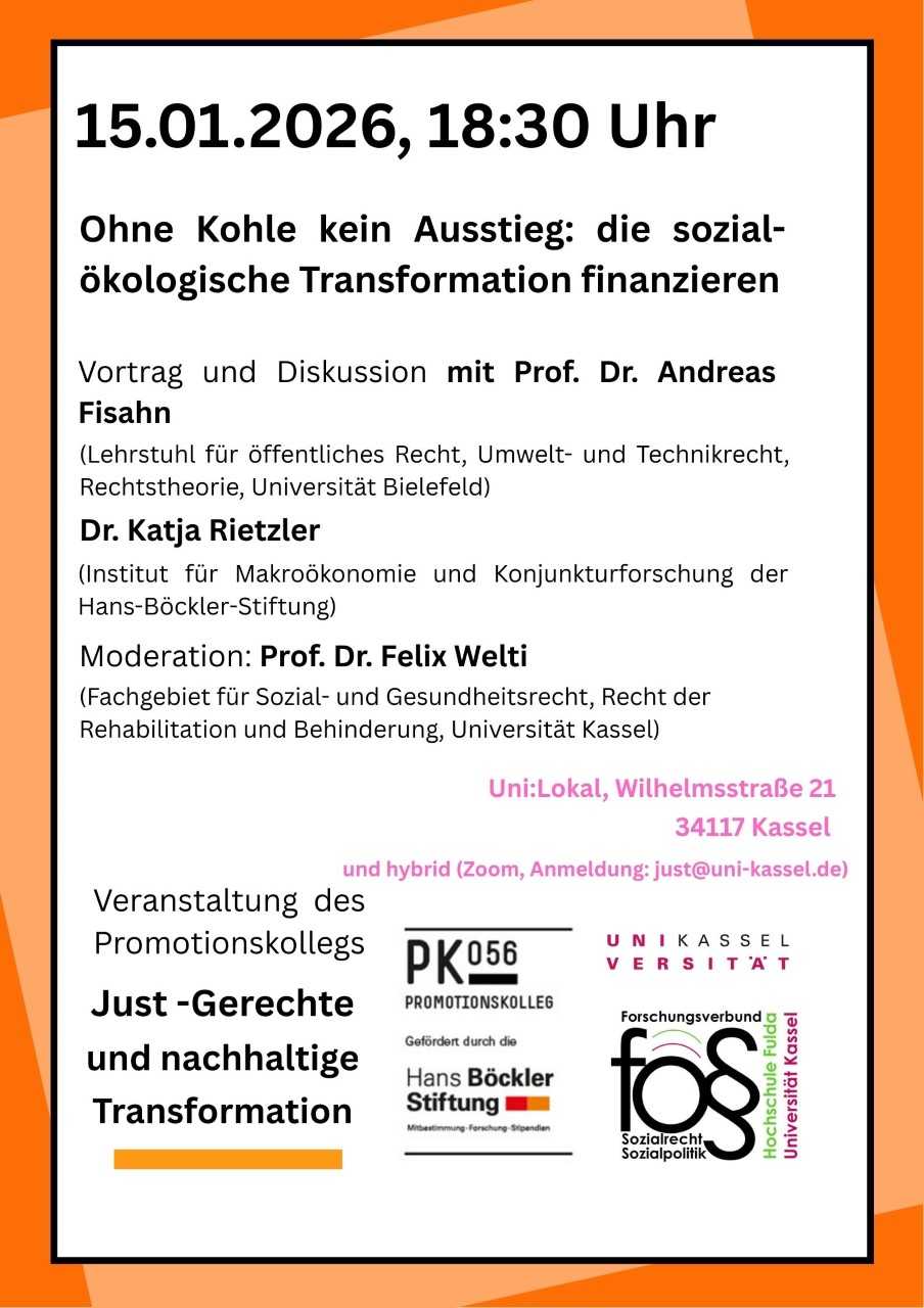 “Ohne Kohle kein Ausstieg: die sozial-ökologische Transformation finanzieren” mit Prof. Dr. Andreas Fisahn und Dr. Katja Rietzler