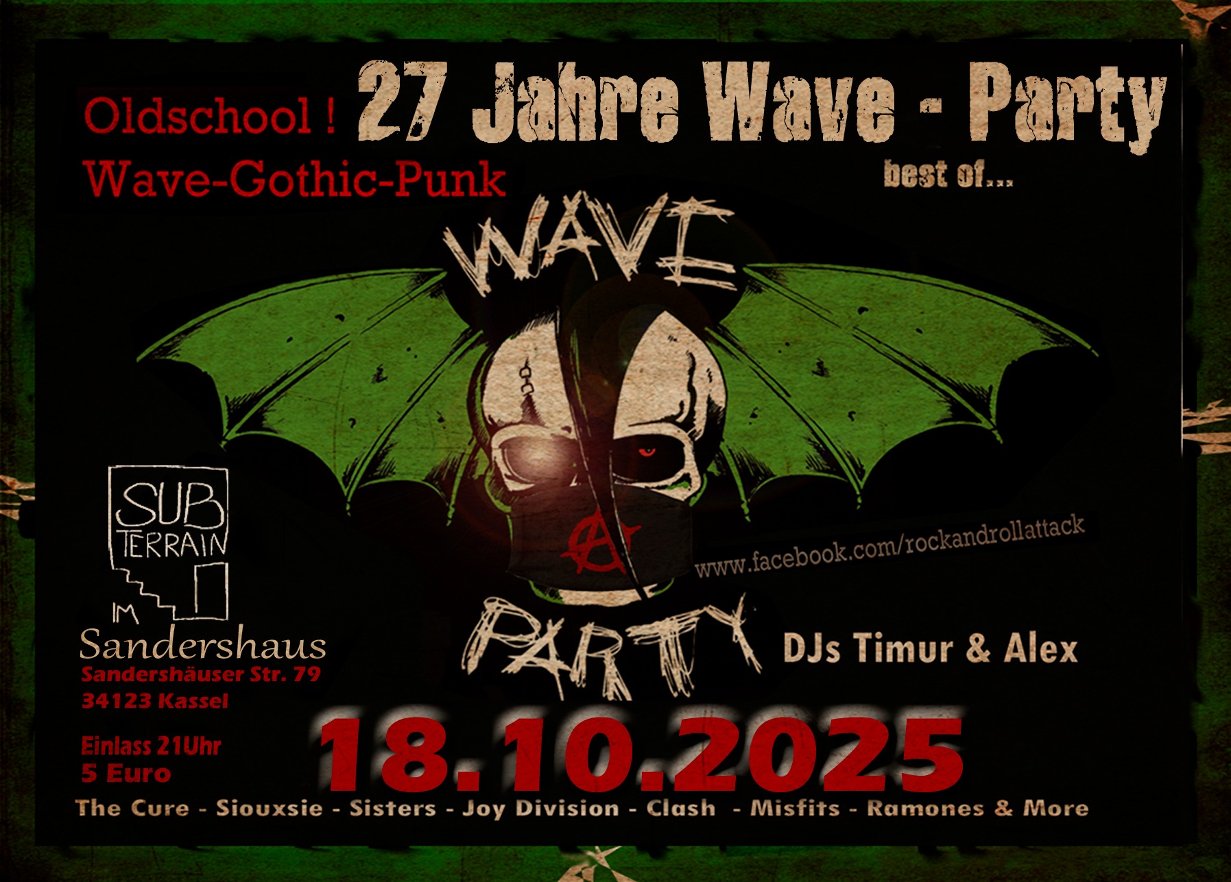 Die Oldschool Underground Party für Gothic, موجة جديدة, Dark Wave und Punkrock Fans (eingeschlossen fast alle Bereiche der “schwarzen”, gitarrenlastigen Musik ). Natürlich werden auch neuere Songs aus den genannten Genres gespielt.