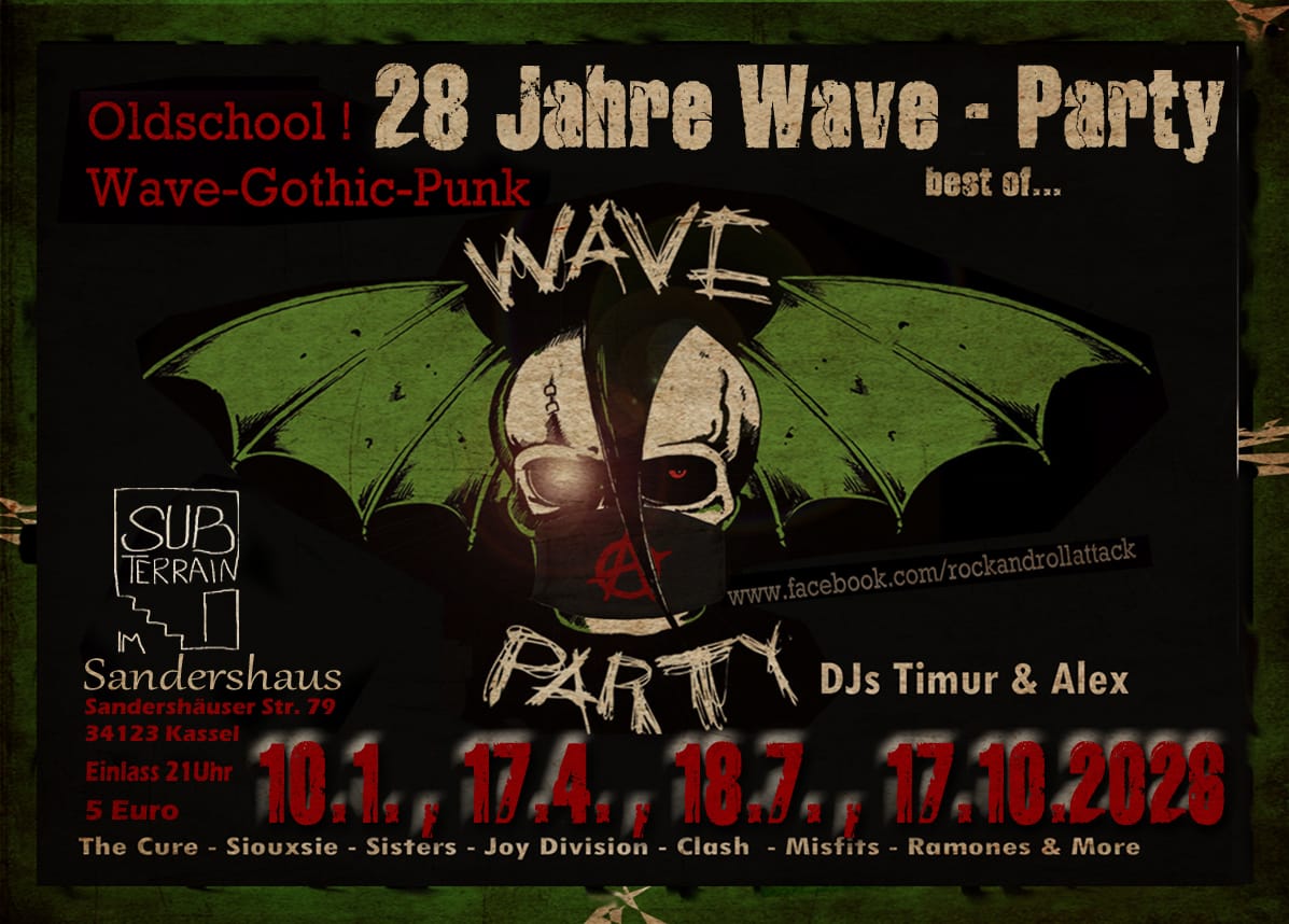 Старая школьная подземная вечеринка для готики, Новая волна, Dark Wave и Punk Rock Fans (eingeschlossen fast alle Bereiche der „schwarzen“, Гитальная музыка ). Конечно, звучат и новые песни упомянутых жанров..