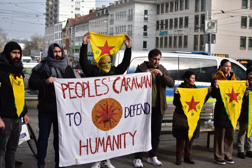 Am Morgen hat die Peoples Caravan Kassel erreicht. تحت شعار “Verteidigung der Menschlichkeit: Grenzen überwinden und Rojava verteidigen” bilden Aktivist:innen aus Europa einen Solidaritätskonvoi zur Grenze nach Kobanê. Auch aus Kassel schlossen sich dutzende der Karawane an.